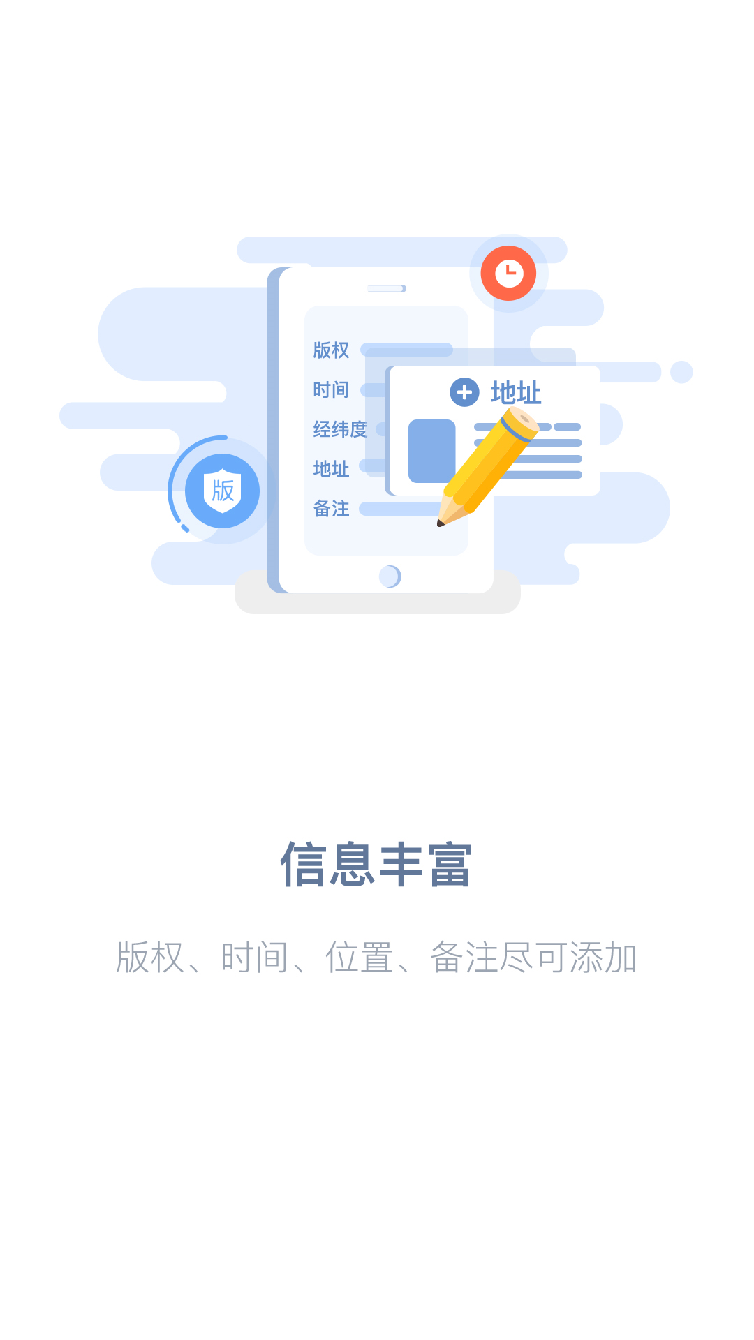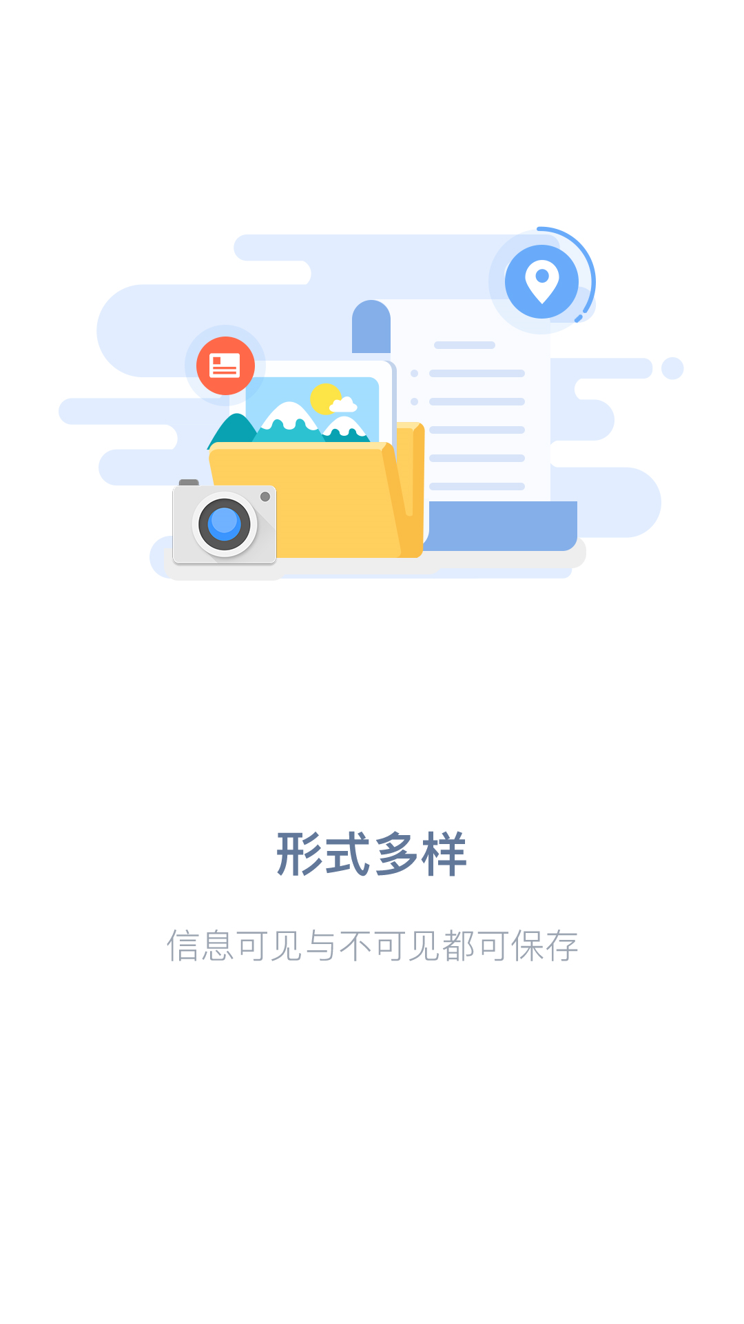 一款可在手机照片中隐藏照片的版权、时间、海拔、经纬度、地址、备注等信息,并能准确提取出照片的相关信息,将其分享到社交网络的手机应用软件。