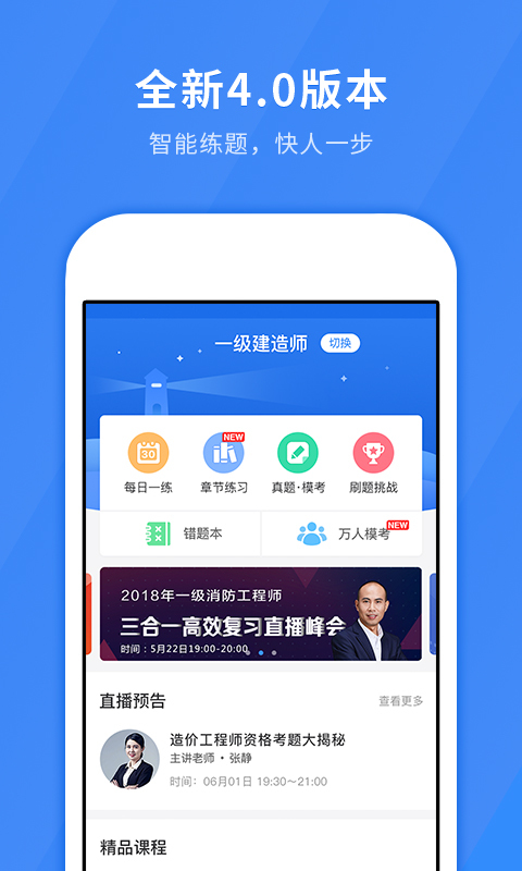 不管你是准备考一建,考二建,考造价,还是考一级消防,想听直播?想做题?想要名师?建造师快题库都能满足你!