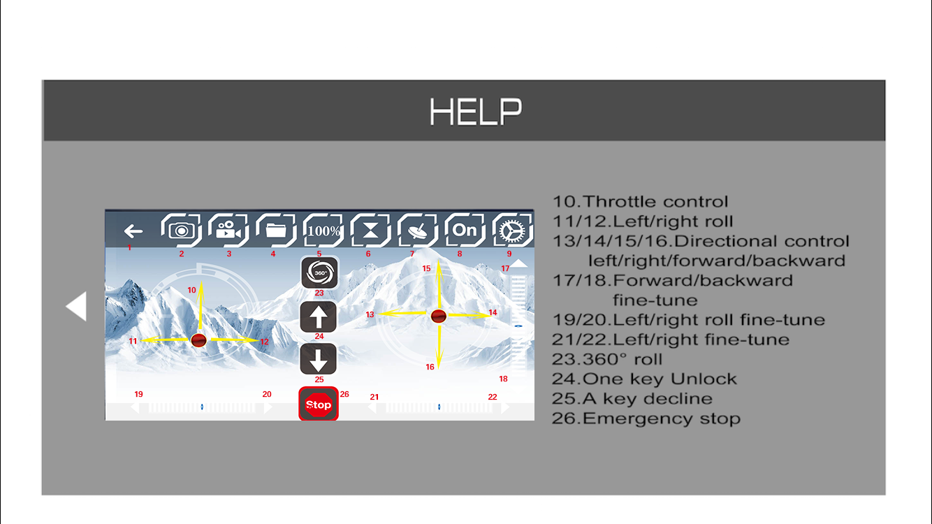 应用程序配备了直观触控界面,操作简单,即便是初学者也可以在短短几分钟内实现像专业人员一样的操控,使产品进行飞行,翻转等动作。
