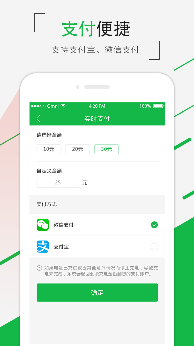 符合用户习惯,能普及充电知识,并随时随地通过集成的高德地图功能,找到并导航至符合自身汽车需要的“快充”或“慢充”的充电站,可选择微信支付或支付宝完成支付。