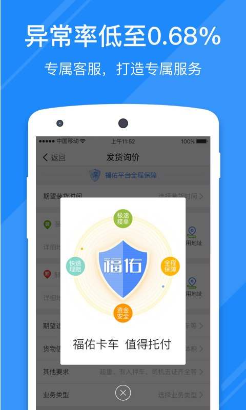 ·25000余名专业物流经纪人5分钟快速响应,满足您的用车需求。