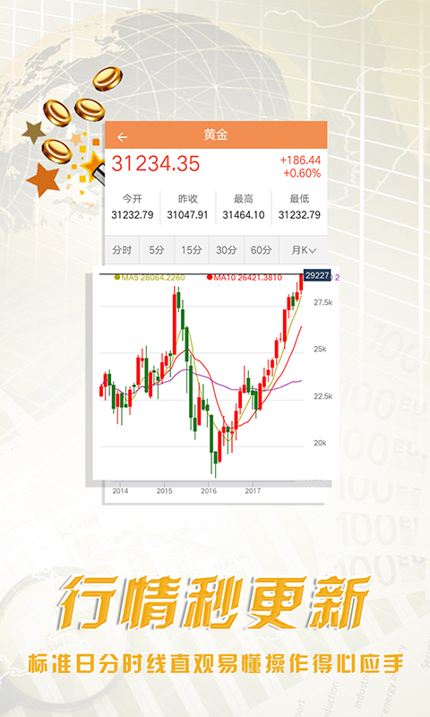 注册即玩,操作简单秒上手,闪电下单快速交易;随时掌握市场热点及财经数据,操盘美原油、恒指、沪金等国内外期货,投资安全稳健,贵金属交易的不二选择!