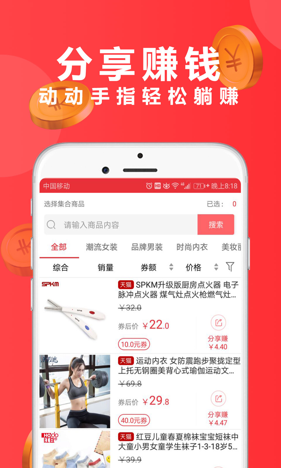 -[分享赚] 一键分享微信好友、朋友圈,轻松通过社交分享躺赚佣金,让您省钱更赚钱!