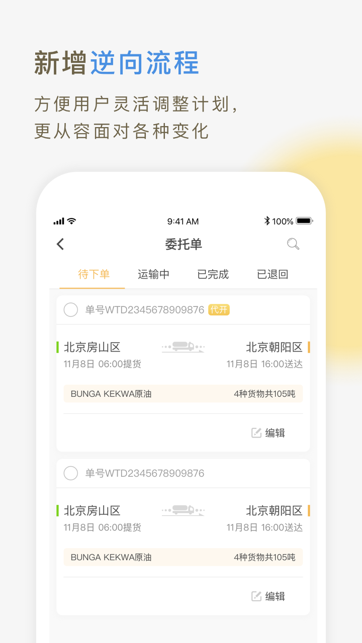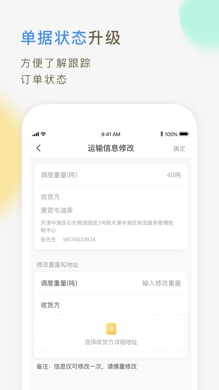 智能调度:承运方可随时随地查看运单状态,实时掌握司机、车辆的运输状况,移动在线调度、跟踪,有效降低沟通成本,提高工作效率。