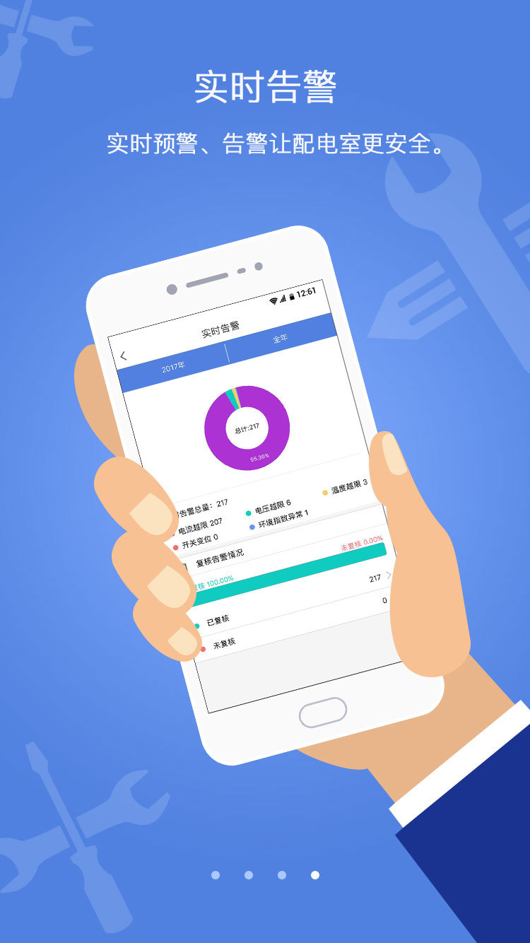 电安心是一款面向配电室智能化的办公软件,使用者可以通过使用电安心来实现配电室智能化巡检,巡视,获取告警信息,查看监控视频等功能。
