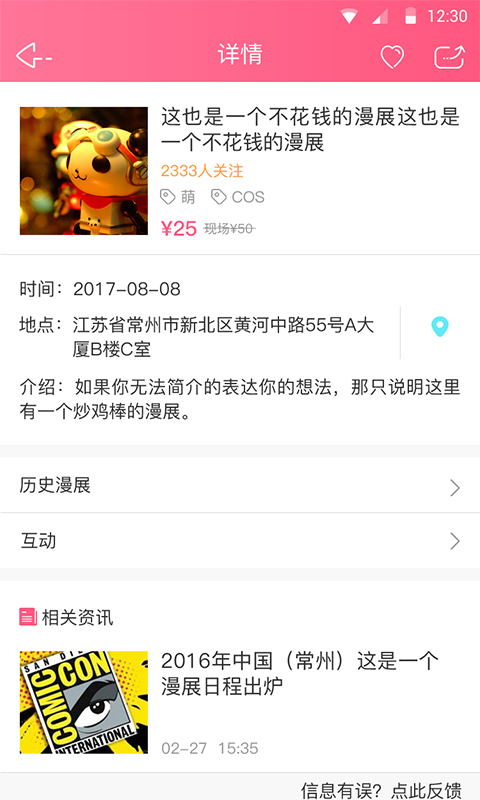 功能:为漫展主办们和逛展子的小伙伴们服务!为两者建立沟通渠道。