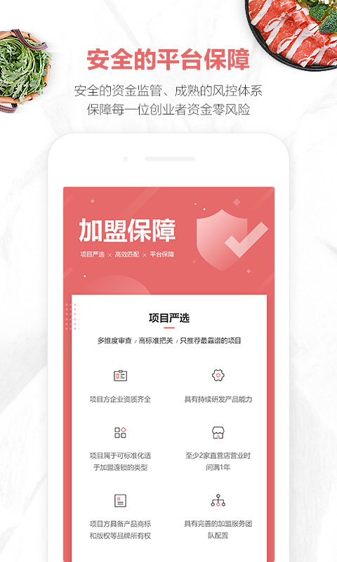 我们制定审核品牌方资质、定价、品牌、产品标准化、运营、供应链等十余项标准,符合上述标准的餐饮企业才会通过审核,通过对入驻项目“严选”为创业者把好关。“商机去哪儿”帮助创业者合理决策,为中国餐饮创业者提供前所未有的创新服务。