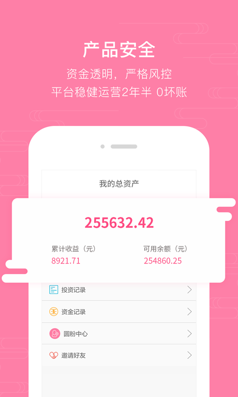 登录密码,身份证,银行卡多重认证,投资理财一键操作;