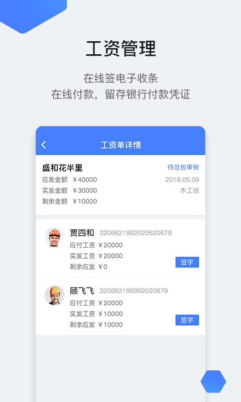 劳务通是专门为建筑企业项目管理量身打造的一款具备高效人脸识别、便捷实时考勤、透明管理工资等功能的app。本软件分为智能考勤,实名认证,工资管理,电子合同,征信体系五大模块。它能够为企业更好的管理项目工人提供便利,同时节约企业管理成本和设备成本等。工人可通过软件用手机就能实时考勤,查看工资发放情况等;而作为管理者可以通过手机掌握工程现场考勤动态,工程进度,同时也可以进行新增工人,审核工资单,发放工资,审批不良记录等操作。劳务通打破了传统项目管理软件无趣的特性,页面展示主要为考勤和工单管理功能,简单易操作,工人无需培训即可上手使用。