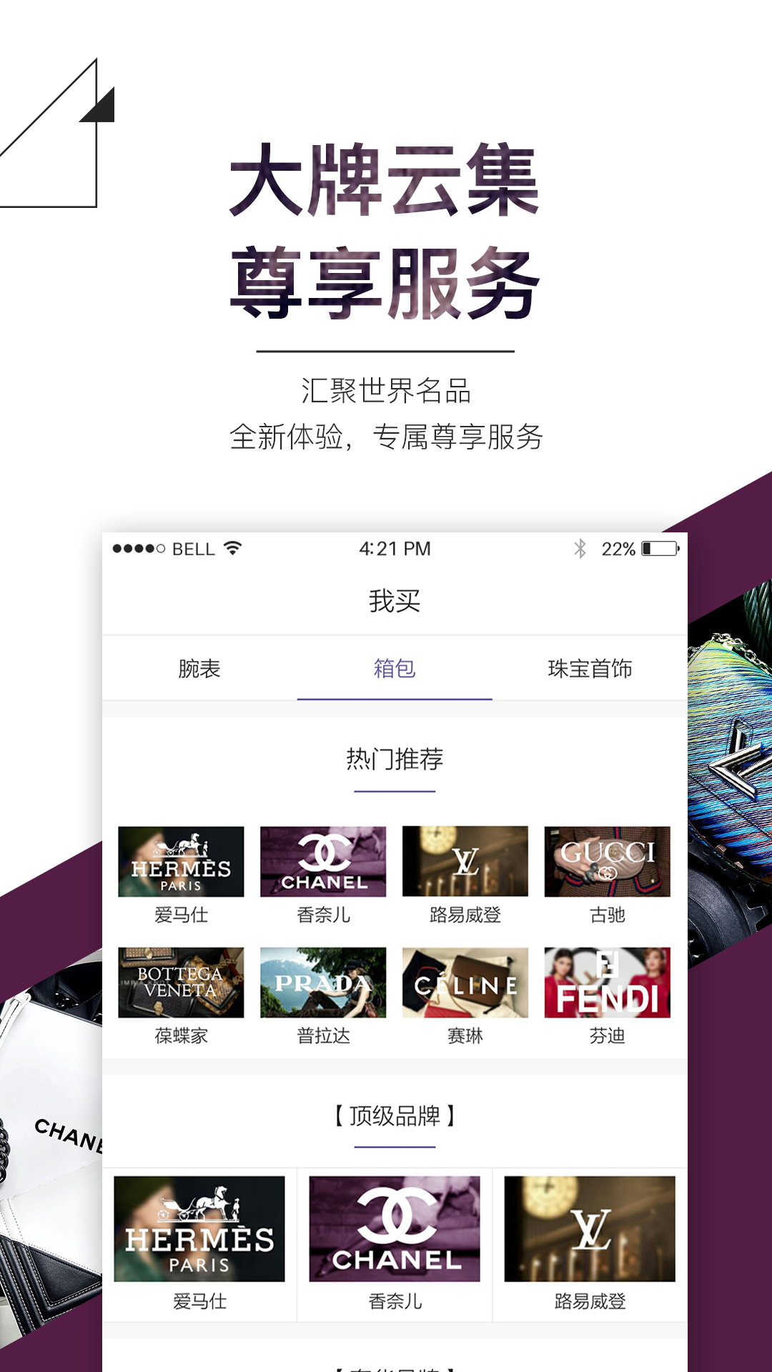 二手名品,此款 APP 专注于建设国内二手名品“买”与“卖”双向交易平台!为消费者提供一站式国检技术检测及无忧售后服务,真正做到随时买,随时卖,购物无忧。我们的口号是:做您名品贴心服务管家!