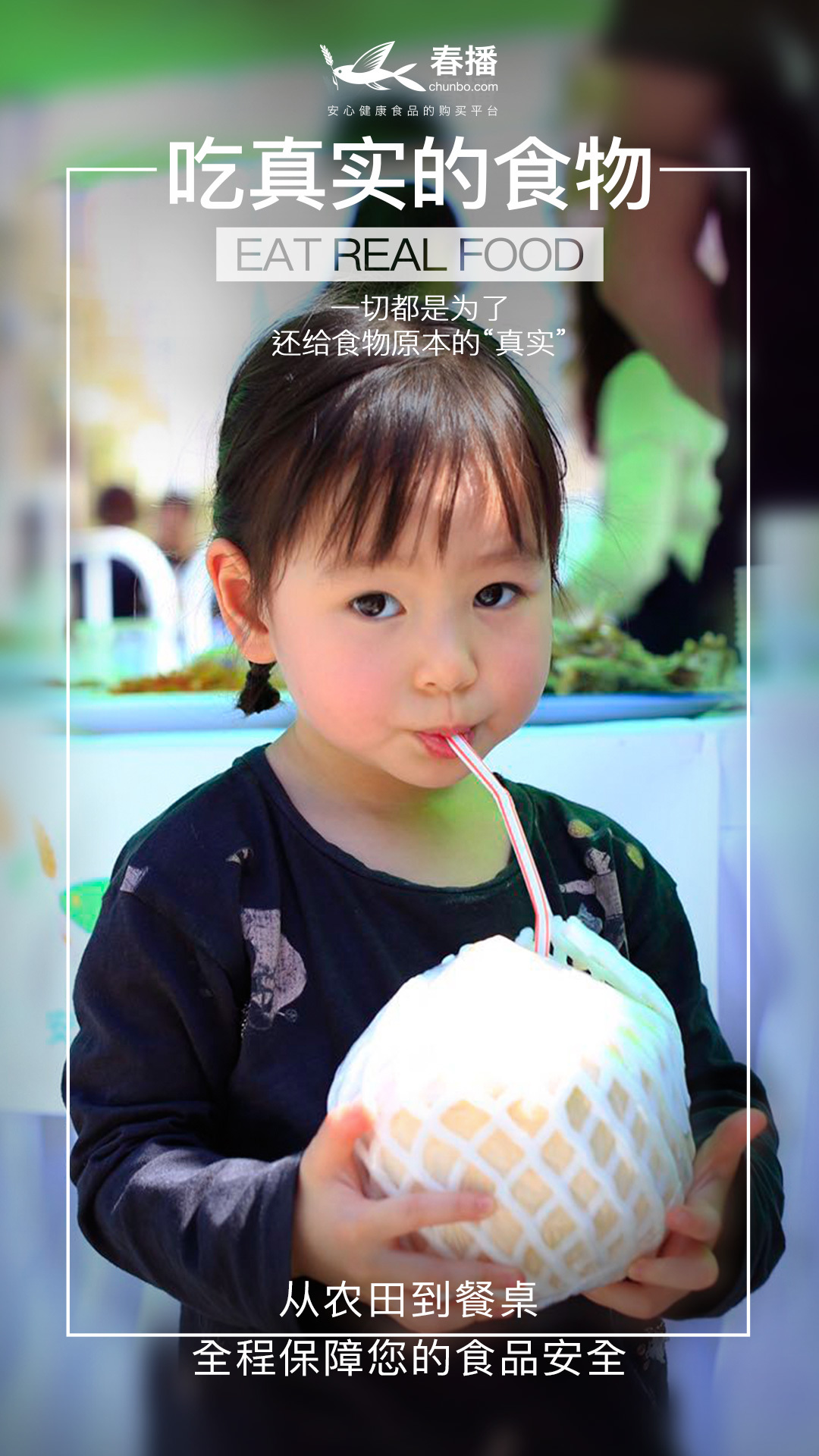 ?春播的使命是为中国家庭提供安心健康的食材和食品,强壮爸爸的肩膀,助力妈妈的手艺,让孩子们在健康快乐中成长。?当您收到一份预定的货品时,无论是烹制大餐用的新鲜食材,还是茶余饭后补充能量的休闲小食,它们都拥有“安心,新鲜,健康,美味”4个特质,缤纷美味非常适合您与家人乐趣共享。