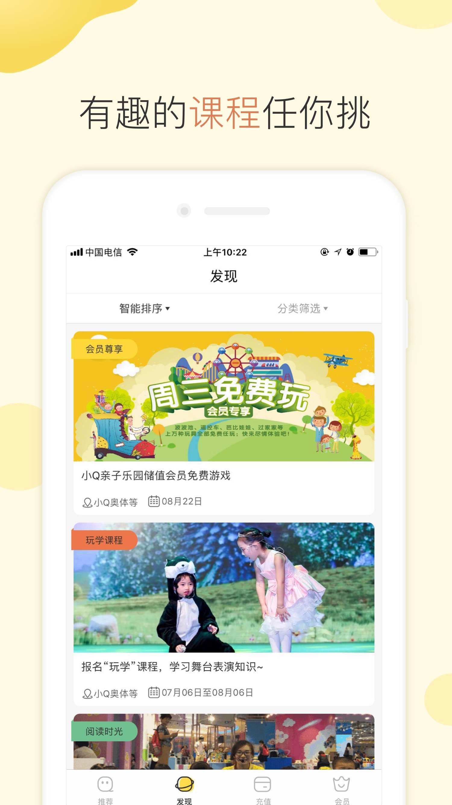 “小Q亲子乐园”手机APP,有效的把儿童启蒙教育体验以线上+线下方式进行结合。旨在为会员提供更丰富多元、贴心便捷的一体式服务。我们的理念是,寓教于乐,让孩子开心启蒙,让家长放心托付。