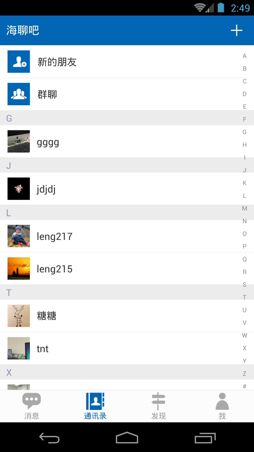1.聊天:单人、多人聊天,发送文字、图片、语音,一触即达。