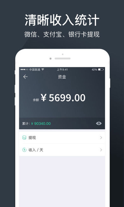 6.资金收入管理,提现到支付宝、微信零钱、银行卡;