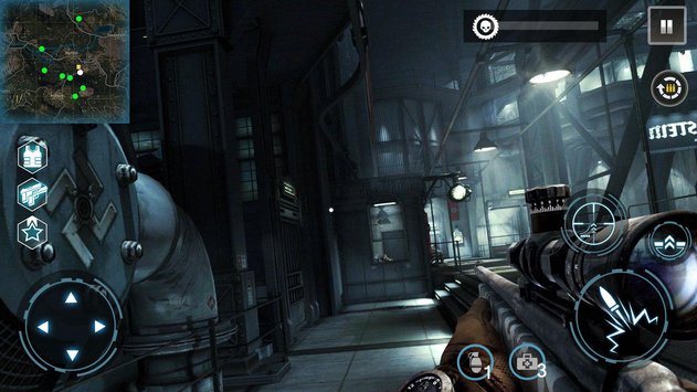 拖拽屏幕移动视角;找到敌人后切换键选择合适的武器,开镜瞄准,对准头部射击,有意想不到的效果。