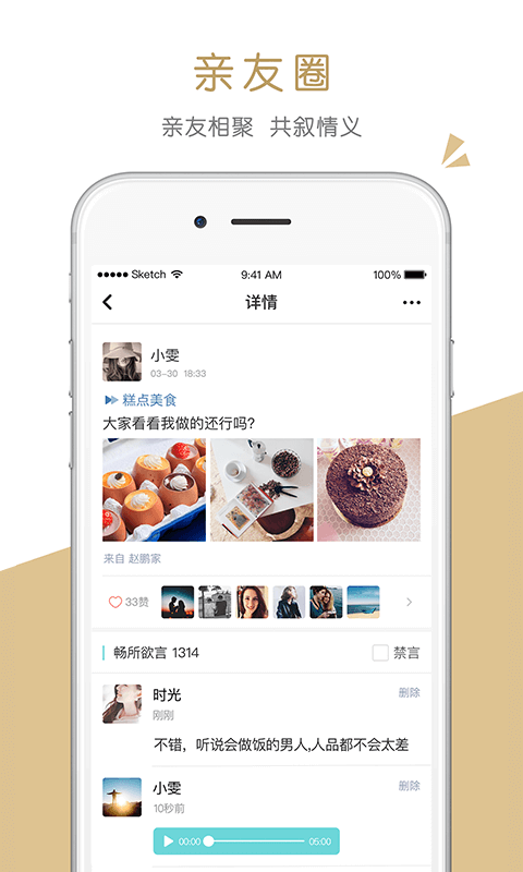 6、互动消息?? 我发布或参与的话题,亲友发言或回复时,及时通知我!