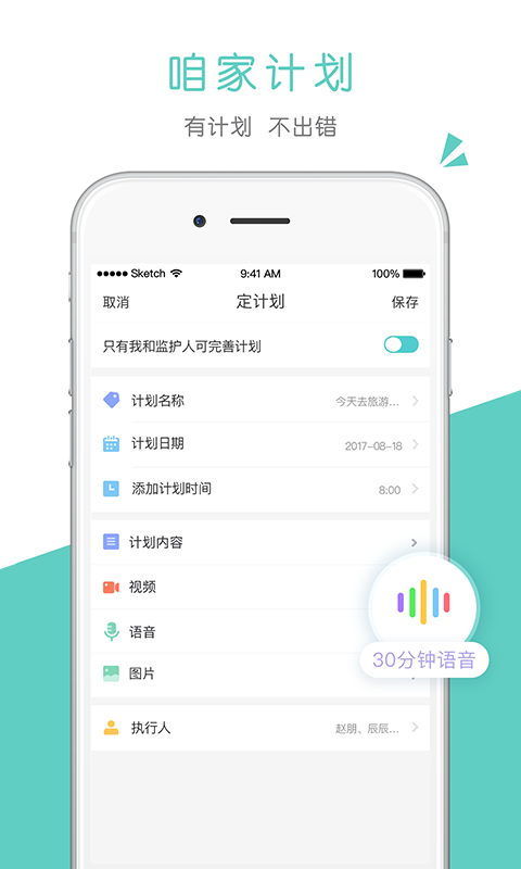 可以文字、图片、语音制定计划。