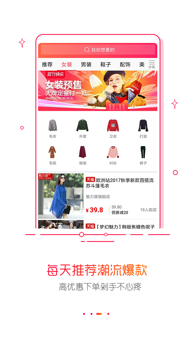 优品快报app是一款购物软件,每天为淘宝天猫用户提供高额优惠券商品,让用户买到便宜又实惠的商品。做为专业导购的优品快报,在app内设计多个分类专场,让用户可以一幕了然看到自己想要购买的商品。