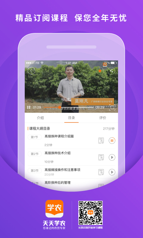 天天学农APP是一个旨在为广大农户提供科学可靠,切实可行的农技知识的学习型平台。在这个平台上,您可以系统地学习农技课程,也可以收获丰富多样的农技新知识,还可以与专家互动,解答您遇到的农技问题。