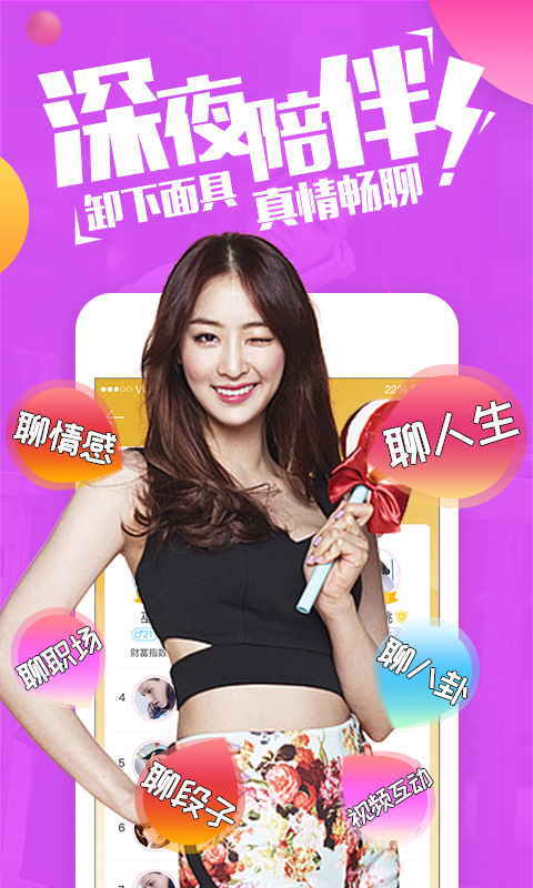 现在,缤果交友推广全新的功能【聊场】,你可以选择和心仪的女生一对一视频聊天,纵情表达真实的想法。再也不用担心在寂寞无聊的晚上求抱抱、看yy、刷微博,度过无聊的时光。