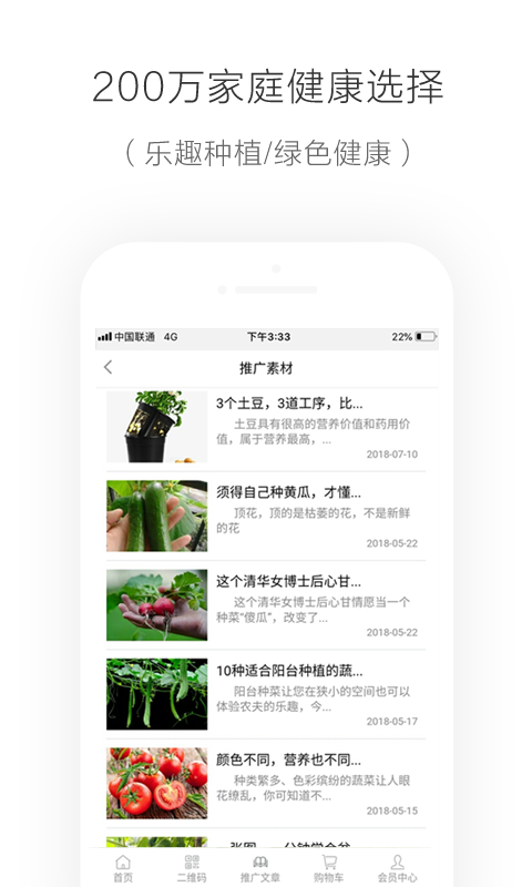 咔吃果园主打家庭种菜,足不出户享受绿色健康,自己种,放心吃,分享赚钱。这其中既有种植乐趣,又能为家中平添一抹绿色,长大的蔬菜还能供给我们吃,让家人吃到亲手种植的放心菜果。