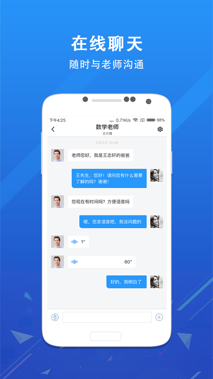 - 及时聊天:与老师在线沟通,参与班级事务讨论;
