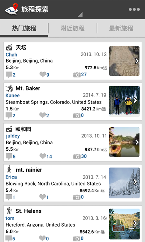 5. 旅程探索。搜索并查看他人的游记攻略,为自己正在计划中的旅程提供参考。