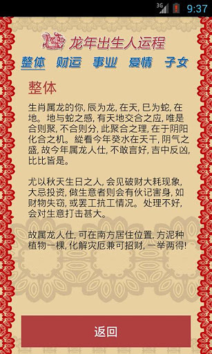 讲究妈妈全力推介: http://www.TalkerMaMa.com 赞好我们 Facebook 专页: http://www.facebook.com/talkermama ????????????????? 踏入2013年又是一个新开始,讲究妈妈邀请了专业玄学大师赖仲明师傅为大家预测一下来的运程,为来年的际遇、事业、财运、爱情及子女各方面作一个全面预测。 赖仲明师父钻研玄学超过18年, 身为专业玄学顾问, 精通玄空大卦风水、子平八字命理、占卦等技术, 亦身兼全球白眉武术总会副主席及锦田通德学校校董。更详细介绍: http://tkmm.cc/fate2013 主要功能包括:■ 十二生肖在2013年运程预测■ 五大分类预测,整体、事业、财运、爱情及子女■ 内容由玄学专家赖仲明师傅提供■ 本程式支援繁体与简体两种语言
