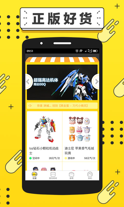 元气扭蛋是一款还原线下扭蛋体验的在线直播扭蛋机。为了让更多人体验到扭蛋的乐趣,获得充满趣味性的二次元周边,玩具,科技产品等。我们运用直播技术,让用户可以在线上体验真实的扭蛋过程,随时随地获得扭蛋的乐趣。