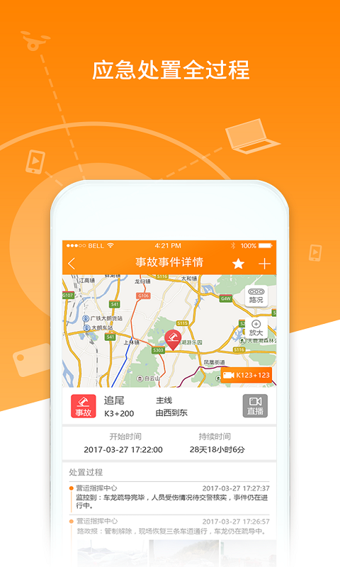 掌路是一款以高速公路路况信息为核心服务的移动手机应用,用户通过该应用可以快速了解高速公路的交通路况,实时查看两客一危车辆状态信息及当前施工、事故事件详情等,是一款便捷、高效的信息化交通管理软件。 1.准确实时的路况信息 2.即时通讯,随心所欲畅聊 3.实时的两客一危和内部车辆告警信息推送 4.高速公路摄像枪全称监控接入 5.事件上报