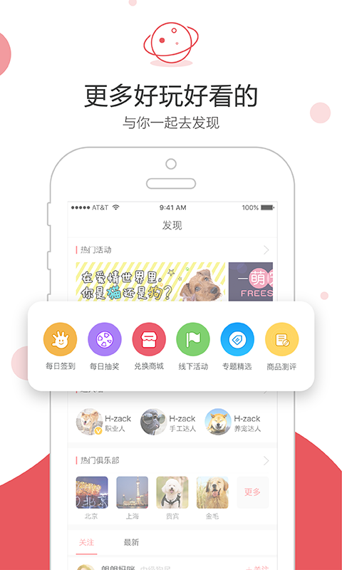 【俱乐部】:金毛、贵宾/泰迪、哈士奇、萨摩耶、边牧、比熊、柯基等近40个热门犬种俱乐部,北京、天津、上海、广东、海外等地方俱乐部,健康、训练、摄影、寄养等综合俱乐部,让你认识更多养宠达人,学习养宠知识、经验交流,从“小白”快速升级为养宠达人。