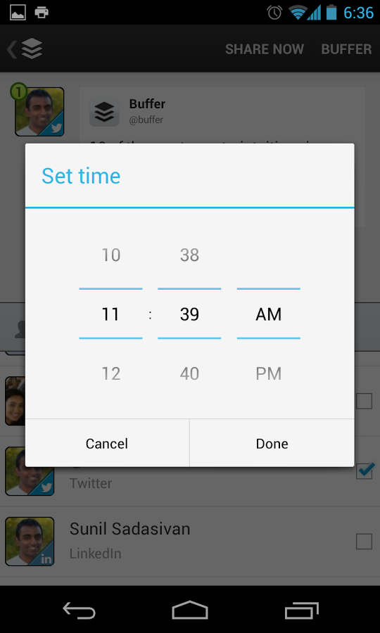 当您阅读一篇文章时,使用 Android 的分享菜单并选择“添加到 Buffer”即可发表相关内容到 Facebook 和 Twitter for Android。它同样支持大量免费 Twitter 应用中的转推功能。*且完美支持 Buffer 的免费 Twitter 应用有: