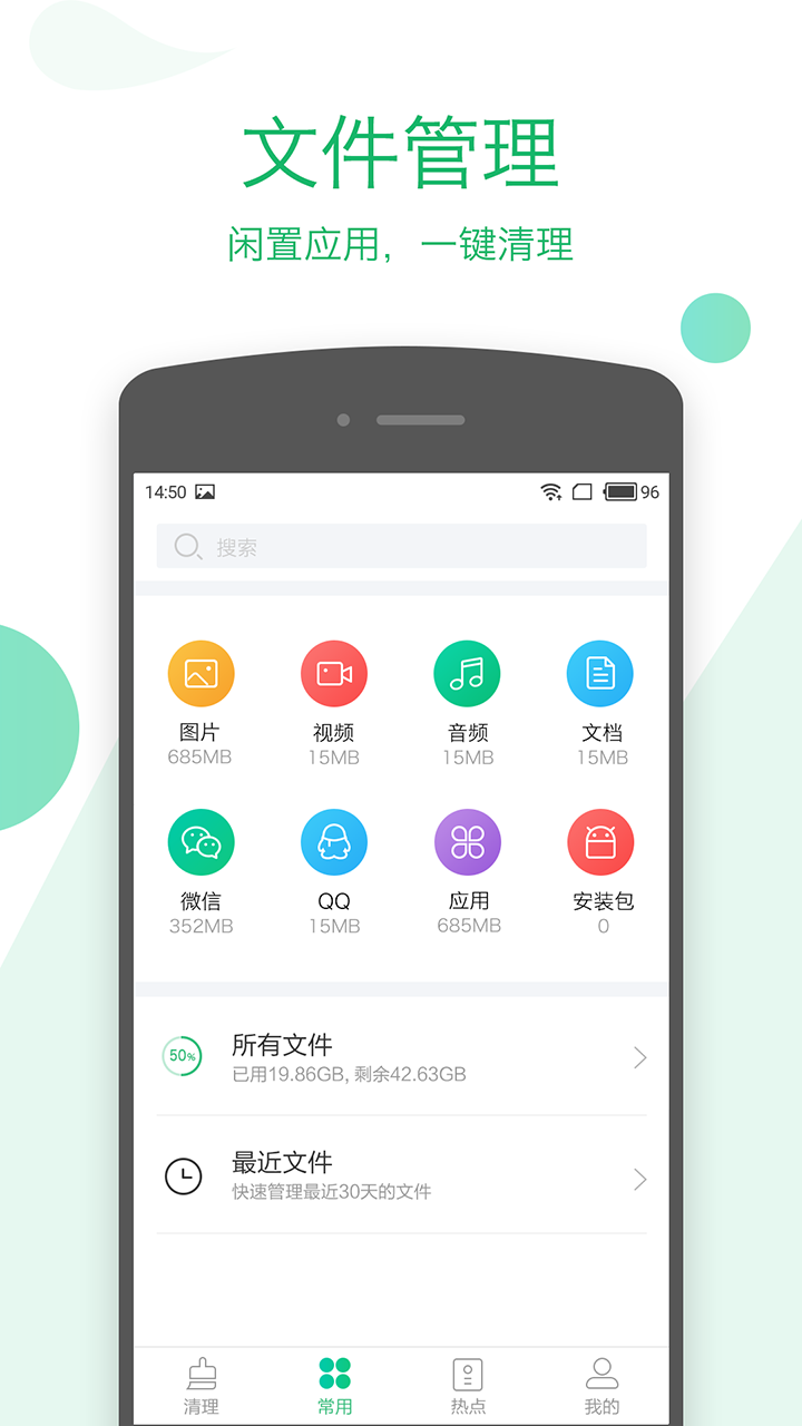 独有文件扫描引擎,极速扫描隐藏文件,手机垃圾无所遁形。