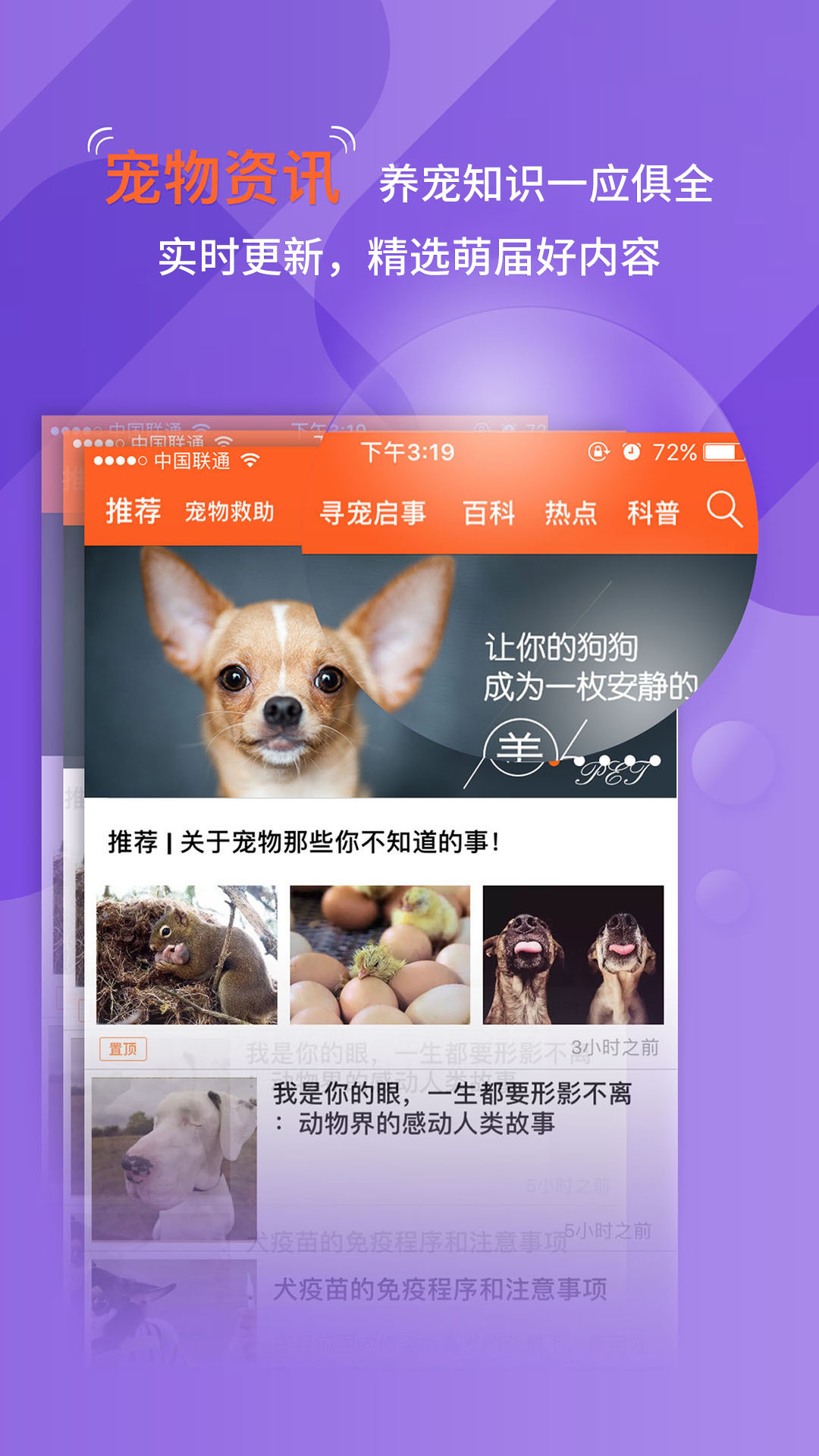 专业的养宠知识,包括宠物日常饲养、美容、训练、医疗等,为你的养宠之路保驾护航!实时更新全球宠物资讯和热门视频,轻松探秘萌宠们的世界!