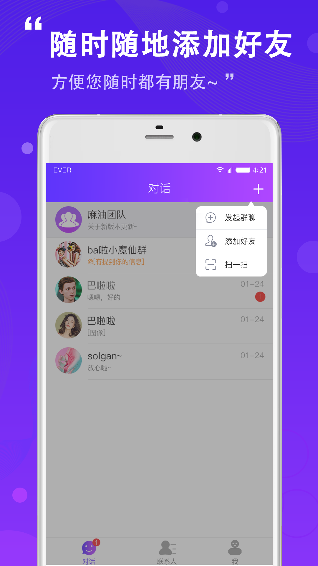 创建或加入高质量的聊天群,约饭/约牌/约玩...,分享大家关注的兴趣点,讨论热点兴趣话题,让沟通从此顺畅。