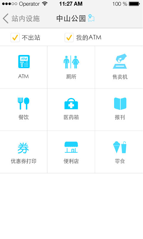 帮你极为方便地找到地铁站内的ATM,厕所,医药箱,…而且提示你哪些设施不需要出站就可以用。
