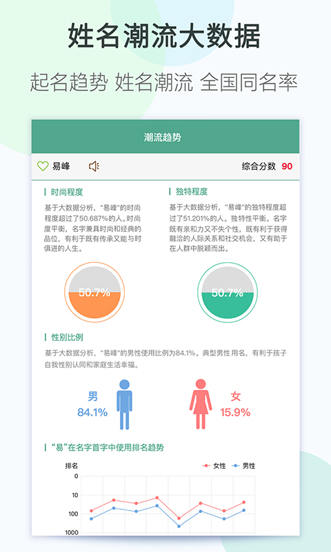 起名取名大全软件不仅深刻剖析了传统的五行八字,还结合易经命理,三才五格,以及古文诗词曲赋的文采,严谨的算法和专业易学国学大师的深厚知识沉淀,是各位宝爸和宝妈的优选。