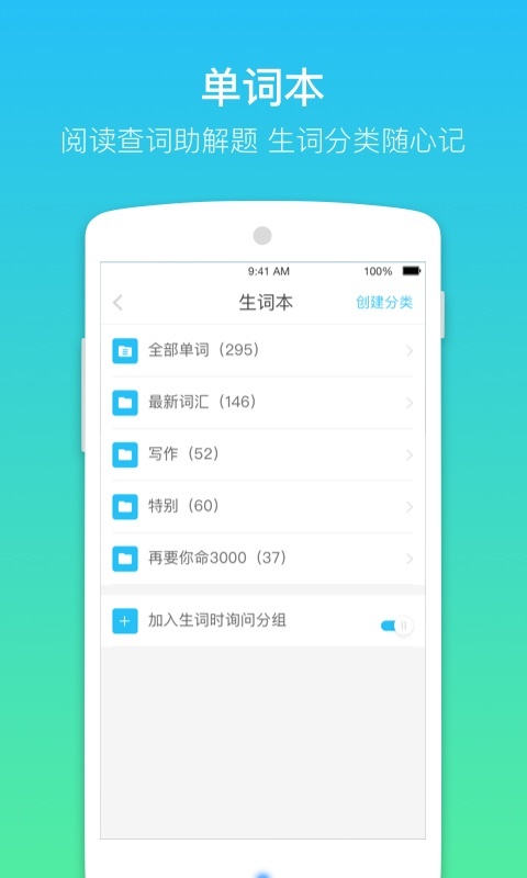阅读支持查单词,可添加到生词本随时温习,生词可自定义分类,轻松搞定GRE单词,防健忘,不收费,你认准了吗?