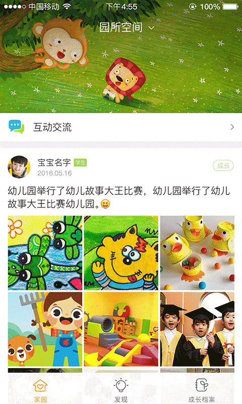 保存孩子成长中精彩,活泼的笑脸,成功的喜悦一一呈现。拥有孩子在校在家完整的成长档案,记录成长点滴瞬间。