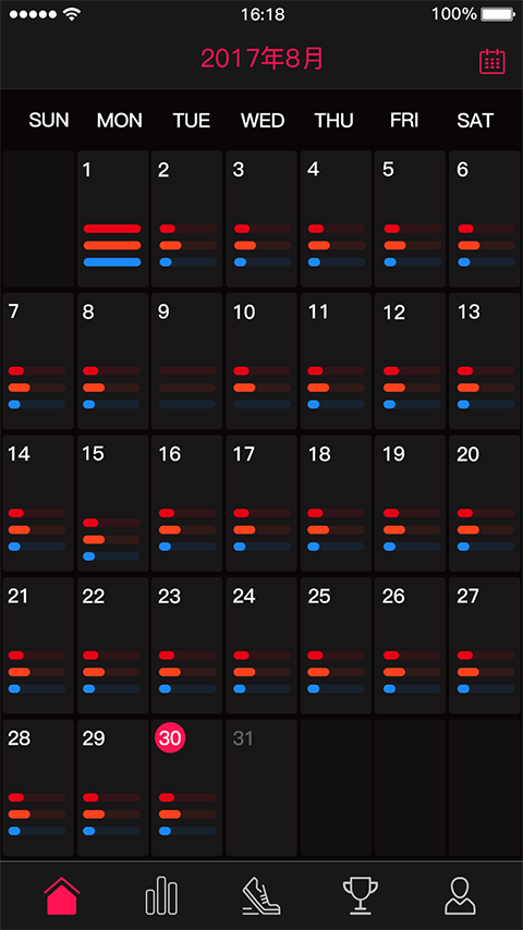 2.App实时视图可显示运动步数,卡路里的消耗等。