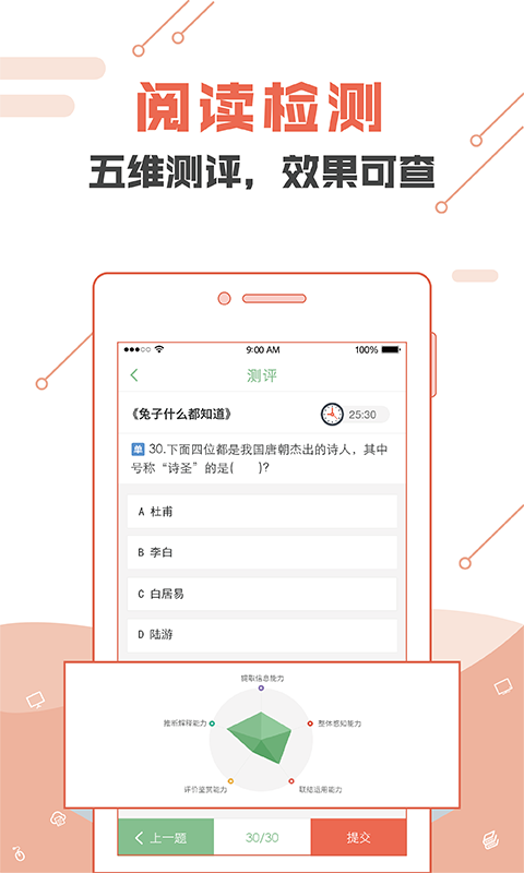 《悦读悦乐》APP围绕全民阅读为中心思想,将传统的面对面提问方式转为轻松愉悦的O2O答题模式,改变了难以全面掌握学生阅读情况和不利于对学生指导的现状,使教学在数字化的同时,更自主化、个性化。整个APP建设涵盖学生和老师端,实现课外阅读书目推荐、在线测评、发表读后感、查看读书排行榜等功能服务。