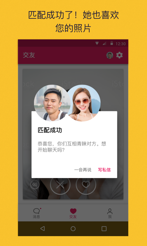 ? 只与相互示好的人聊天。匹配相互感兴趣的人,避免打扰。现在就开始表达您的情感,遇见你喜欢的人。