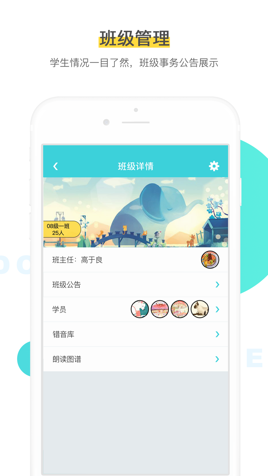 - 班级管理:学生情况一目了然,班级事务公告展示