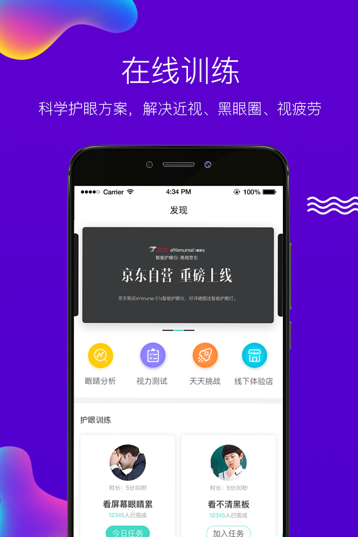 通过与智能护眼仪双向数据学习与记忆,结合用户手机使用数据综合分析用户的眼健康状态,实时提醒用户进行护眼训练,快速形成健康的用眼习惯,及时修复眼睛疲劳保持眼睛健康美丽。