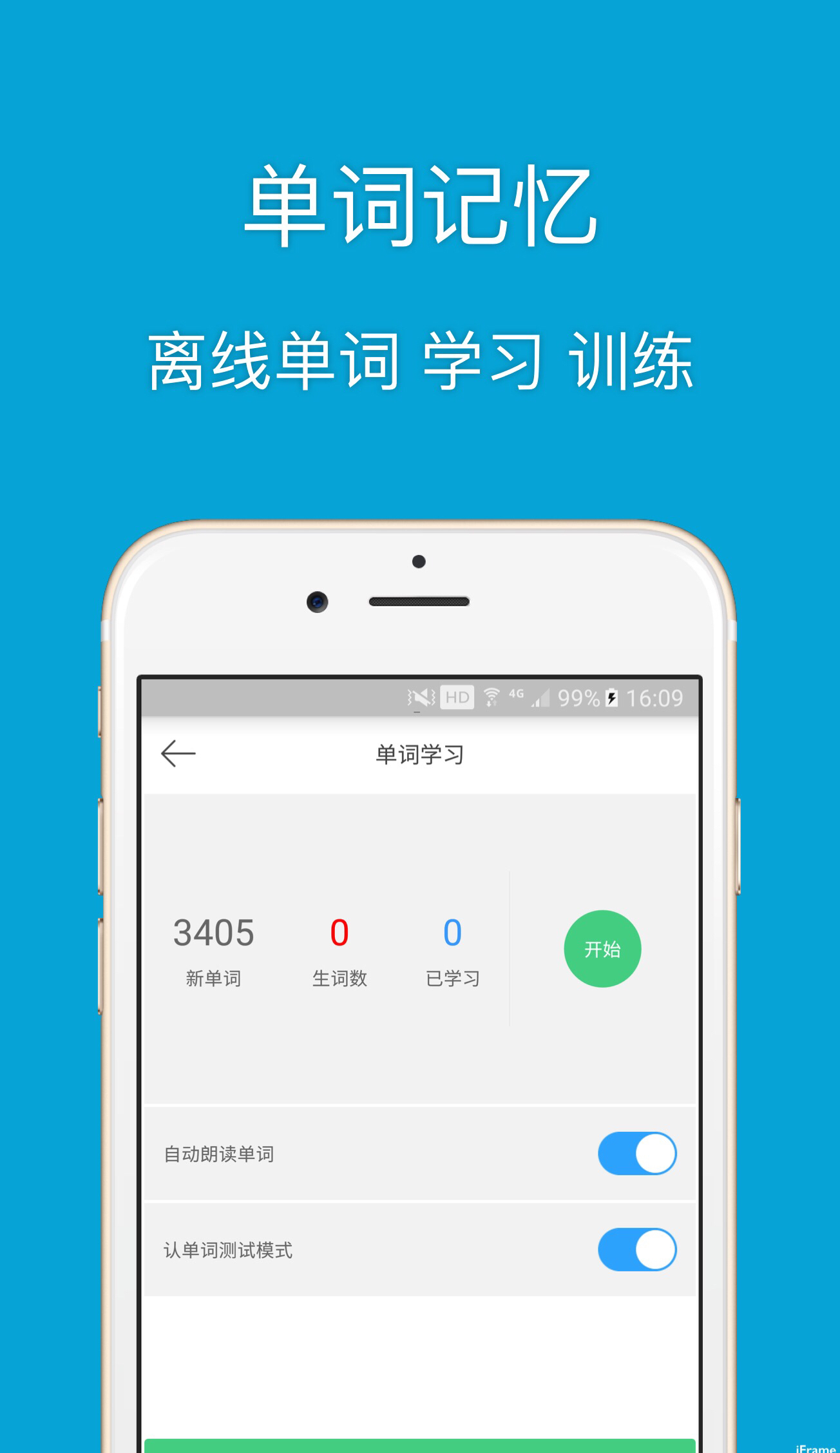 中英文语音翻译、语音播报、一键查词、词典翻译、口语评分、英文搜索、粤语翻译、翻译收藏、离线背单词、离线短语查询、听力练习、口语大全;