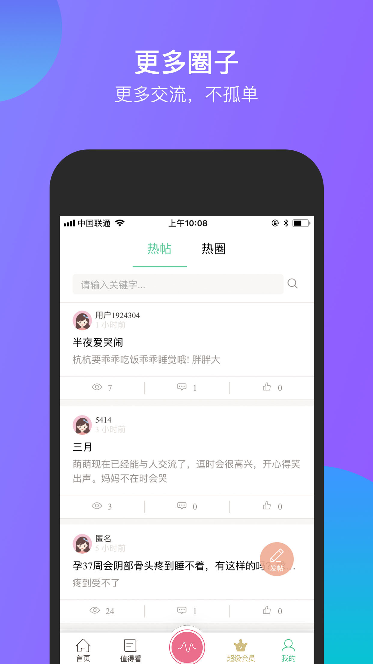 【圈子】便于孕妇、宝妈等经验交流、情感沟通。