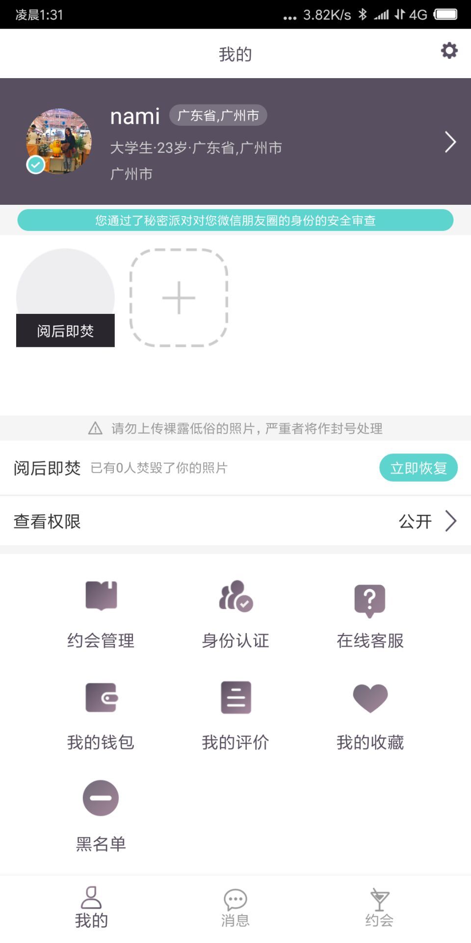 感谢您使用秘密派对!这里提供不玩套路的私密优质约会体验!