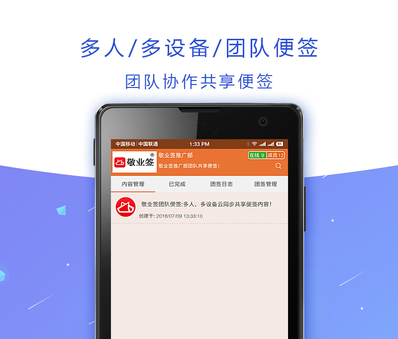 8、团队便签:支持多人/多设备加入敬业签团队便签,实现便签内容团队协作共享便签管理。