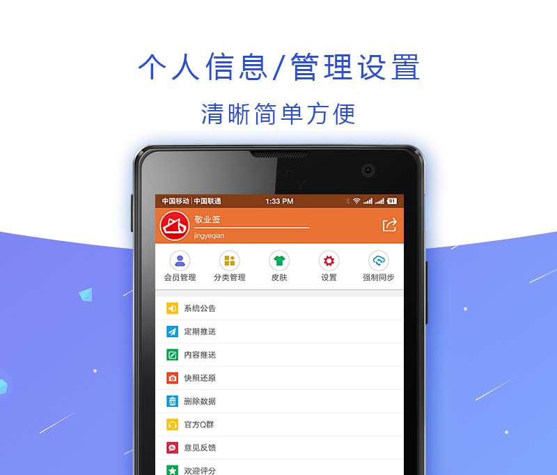 6、内容推送:支持快照还原、内容导出、定时推送等,让记录在敬业签的每一件事情,都能得到放心的保管或便签内容手机或定期备份到邮件存储。