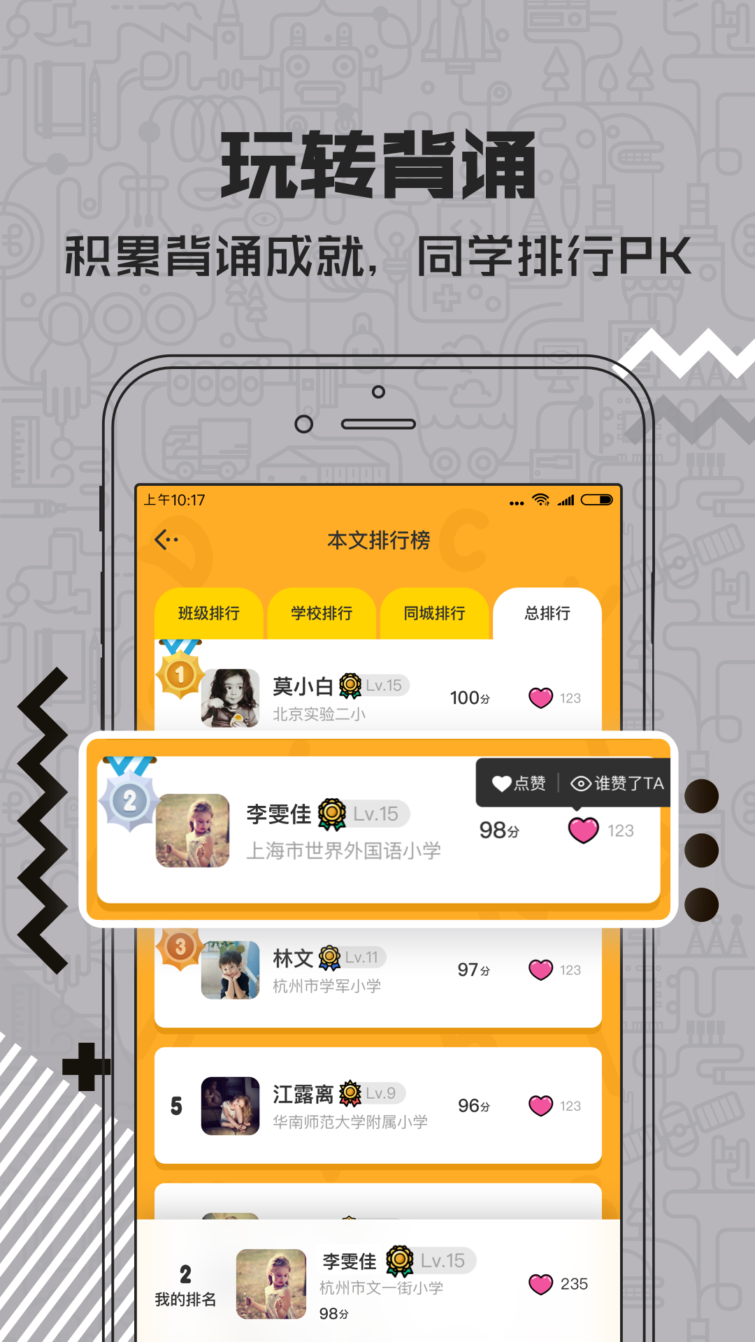 天天酷背是专为中小学生研发的轻松高效背诵App,采用神奇科学图像记忆法,让背诵变得轻松、好记、有趣,让学生背诵不再烦恼。